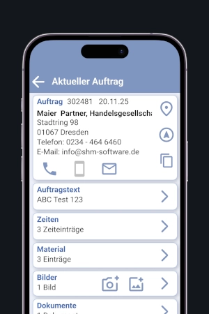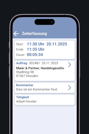 Ihr Büro für unterwegs. Alle Auftragsdaten haben Sie auf dem Smartphone immer dabei – komplett papierlos.