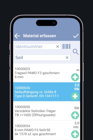 Nichts mehr vergessen. Buchen Sie Material direkt auf der Baustelle per Suchfunktion oder Barcode-Scan auf den passenden Auftrag.